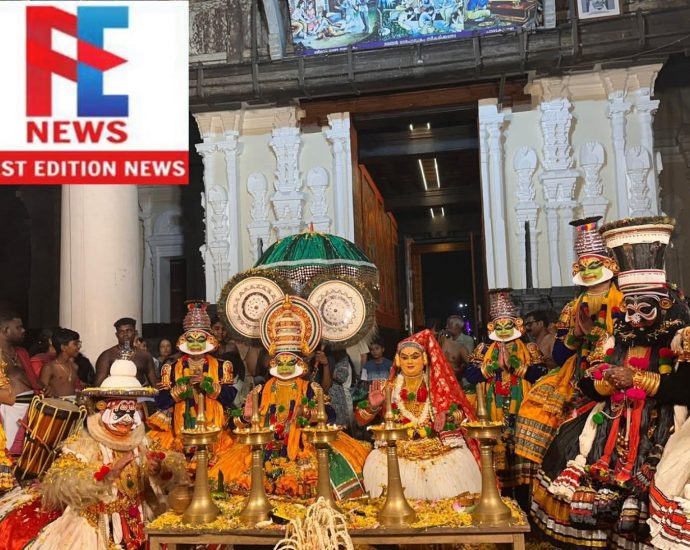 ശ്രദ്ധ നേടി ശ്രീകൂടൽമാണിക്യം ക്ഷേത്രത്തിൽ ശ്രീരാമപട്ടാഭിഷേകം കഥകളി വഴിപാട് ഇരിങ്ങാലക്കുട : ശ്രദ്ധ നേടി ശ്രീരാമപട്ടാഭിഷേകം കഥകളി . കൂടൽമാണിക്യം ക്ഷേത്രത്തിൻ്റെ കിഴക്കേ നടയിൽ പ്രൊഫ: ലക്ഷ്മണൻ നായർക്കുവേണ്ടി ഭാര്യ സാവിത്രിലക്ഷ്മണൻ, മക്കൾ ബാലമുരളി, അപർണ്ണ, മരുമക്കൾ ലക്ഷ്മി, രഞ്ജിത്, പേരക്കുട്ടികൾ അർജ്ജുൻ , അദ്വൈത് , അജിത്, ആർദ്രലക്ഷ്മി, എന്നിവർ ചേർന്ന് വഴിപാടായിട്ടാണ് കഥകളി സമർപ്പിച്ചത്. പേരക്കുട്ടി അജിത്തിൻ്റെ അരങ്ങേറ്റവും ഉണ്ടായി.കലാനിലയം ഗോപി (ശ്രീരാമൻ ), കലാനിലയംContinue Reading