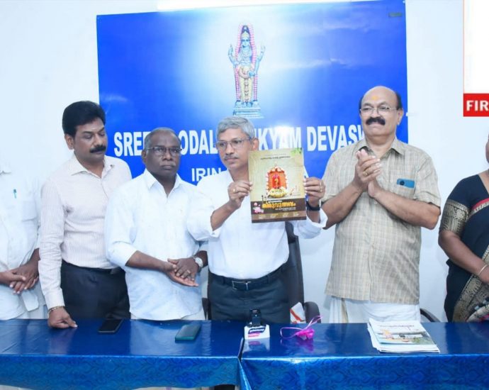 ശ്രീ കൂടൽമാണിക്യം തിരുവുൽസവത്തിന് ഏപ്രിൽ 28 ന് കൊടിയേറും; തിരുവുൽസവ പരിപാടികൾ അടങ്ങിയ ബുക്ക് പ്രകാശനം ചെയ്തു… ഇരിങ്ങാലക്കുട :ഇരിങ്ങാലക്കുട ശ്രീകൂടൽമാണിക്യം ക്ഷേത്രത്തിലെ ഈ വർഷത്തെ തിരുവുൽസവം ഏപ്രിൽ 28 ന് കൊടിയേറി മെയ് 8 ന് കൂടപ്പുഴ ആറാട്ടുകടവിൽ ആറാട്ടോടെ സമാപിക്കും. 28 ന് രാത്രി 8.10 നും 8.40 നും മധ്യേയാണ് കൊടിയേറ്റ ചടങ്ങ് നടക്കുക. തുടർന്നുള്ള ദിവസങ്ങളിൽ ശീവേലി, വിളക്ക്, വിവിധ വേദികളിലായി സാംസ്കാരികContinue Reading