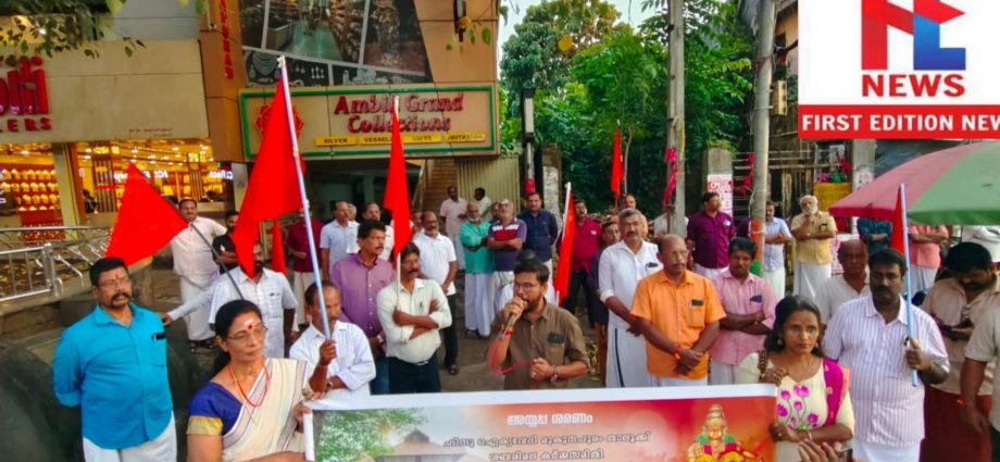 ശബരിമല ക്ഷേത്രം സംരക്ഷിക്കണമെന്നും ദേവസ്വം ബോർഡ് പിരിച്ച് വിടണമെന്നും ആവശ്യപ്പെട്ട് ഹിന്ദു ഐക്യവേദിയുടെ നേതൃത്വത്തിൽ നഗരത്തിൽ നാമജപയാത്ര