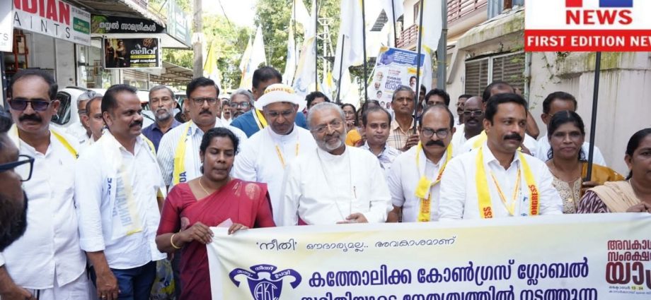 കത്തോലിക്ക കോൺഗ്രസ്സിൻ്റെ അവകാശ സംരക്ഷണ യാത്രയ്ക്ക് നഗരത്തിൽ സ്വീകരണം; മത പരിവർത്തന നിരോധനനിയമം പിൻവലിക്കണമെന്ന് മാർ പോളി കണ്ണൂക്കാടൻ.