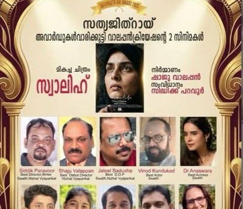 തിരുവനന്തപുരം സത്യജിത് റേ ഫിലിം സൊസൈറ്റിയുടെ അവാർഡുകൾ “നിഴൽവ്യാപാരികൾ ” ക്കും ” സ്വാലിഹ് ” നും