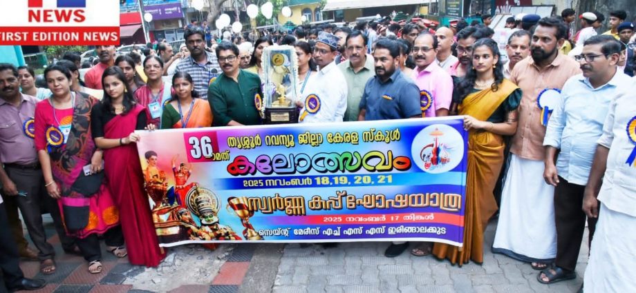 36-മത് തൃശ്ശൂർ റവന്യു ജില്ല കേരള സ്കൂൾ കലോത്സവം; വർണ്ണാഭമായി ഘോഷയാത്ര ഇരിങ്ങാലക്കുട : കലാമാമാങ്കത്തിന് മുന്നോടിയായി വർണ്ണാഭമായി ഘോഷയാത്ര. ഇരിങ്ങാലക്കുടയിൽ നവംബർ 18 മുതൽ 21 വരെയുള്ള ദിവസങ്ങളിൽ 22 വേദികളിലായി അരങ്ങേറുന്ന 36- മത് തൃശ്ശൂർ റവന്യു ജില്ലാ സ്കൂൾ കലോത്സവത്തിന് മുന്നോടിയായി സ്വർണ്ണക്കപ്പുമായി നടന്ന ഘോഷയാത്ര സെൻ്റ് മേരീസ് സ്കൂൾ പരിസരത്ത് നിന്ന് ആരംഭിച്ച് പട്ടണം ചുറ്റി മുഖ്യവേദിയായ ടൗൺ ഹാളിൽ സമാപിച്ചു. ഡിഡിഇContinue Reading