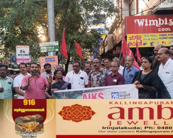മുരിയാട് സീയോനിൽ കൂടാരത്തിരുന്നാൾ ജനുവരി 29 മുതൽ ഇരിങ്ങാലക്കുട : മുരിയാട് എംപറർ എമ്മാനുവൽ ചർച്ച് (സീയോൻ) സംഘടിപ്പിക്കുന്ന കൂടാരത്തിരുന്നാളിൻ്റെ പ്രധാന ചടങ്ങുകൾ ജനുവരി 29, 30 തീയതികളിൽ നടക്കും. 29 ന് വൈകീട്ട് 4ന് ബൈബിൾ സംഭവങ്ങളെ ആധാരമാക്കി ഒരുക്കുന്ന ദൃശ്യാവിഷ്കാരങ്ങൾ, ഡിസ്പ്ലേകൾ, ബാൻഡ് വാദ്യങ്ങൾ എന്നിവയുടെ അകമ്പടിയോടെ മുരിയാട് ഗ്രാമം ചുറ്റി ഘോഷയാത്ര നടക്കുമെന്ന് ബ്രദർ തോമസ് ജോസഫ്, ട്രസ്റ്റി എൽദോ കെ മാത്യു, ജോസ്Continue Reading
